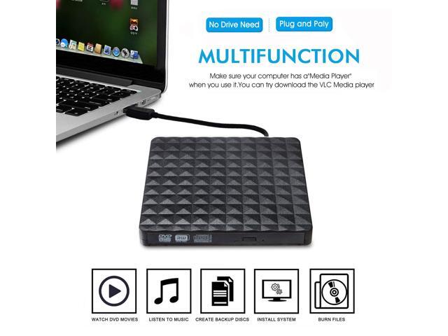 Jansicotek Diamond Pattern External CD Drive, USB 3.0 Portable CD DVD +/-RW Drive Slim DVD/CD ROM Rewriter Burner Writer, High Speed Data Transfer for Laptop/Macbook/Desktop/MacOS/Windows10/8/7-Black