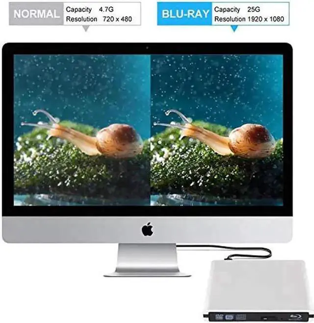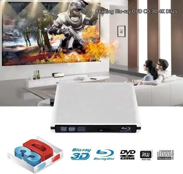 Super Slim Drive USB 3.0 Burner external Blu Ray player can play Blu-ray discs, DVDs and CDs, can also write Blu-ray discs, DVDs and CDs. Connected through a USB 3.0 port, this DVD player has a fast data transfer rate and a strong error correction capability.