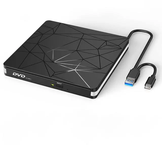 External DVD Drive, USB 3.0 Portable CD/DVD Burner & Player for Laptop & Desktop External Optical Drive for PC, Tray-Load, Plug & Play, Ultra-Slim White border