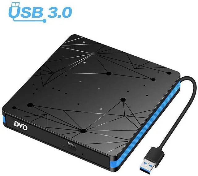 External CD/DVD Drive, USB 3.0 Portable CD Burner & Reader for Laptop & Desktop Plug & Play External Optical Drive for PC, Tray-Load, Ultra-Slim Design - Single line Blue edge