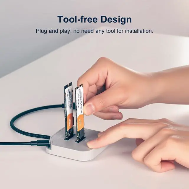 • Portable & Versatile with C-C to A CableOur NVMe dock features a smart C-C to A cable for flexible power and connectivity options. The lightweight, pocket-sized design lets you clone drives anywhere - ideal for IT professionals and tech enthusiasts on the go.