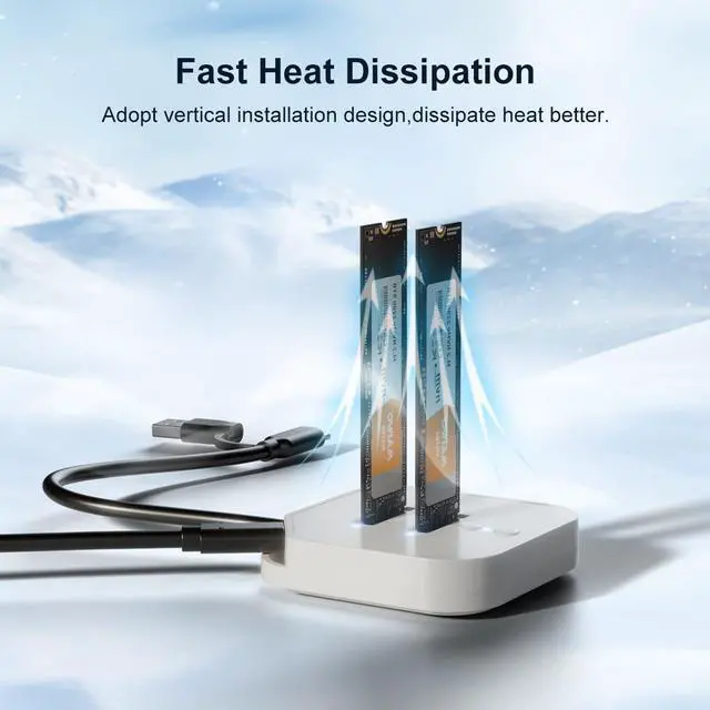 • Enhanced Cooling for Stable PerformanceThe NVMe duplicator dock incorporates advanced heat dissipation technology to maintain optimal temperatures during extended cloning sessions, ensuring reliable 20Gbps transfer speeds and protecting your valuable data.