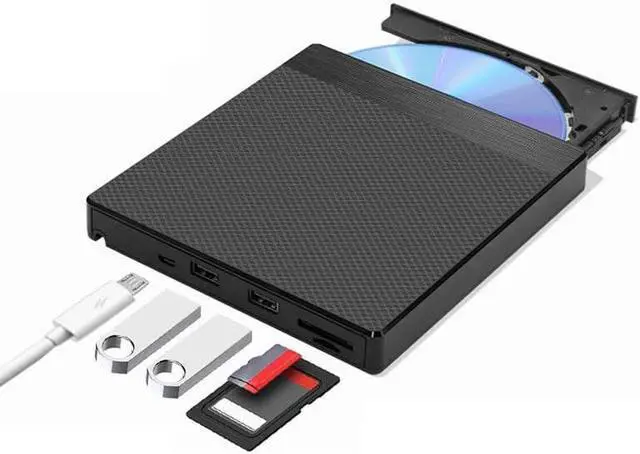 2 In 1 USB External Optical Drive Portable External Type-C CD Burner High Speed CD/DVD Player TF/SD Card Reader For Windows Linux