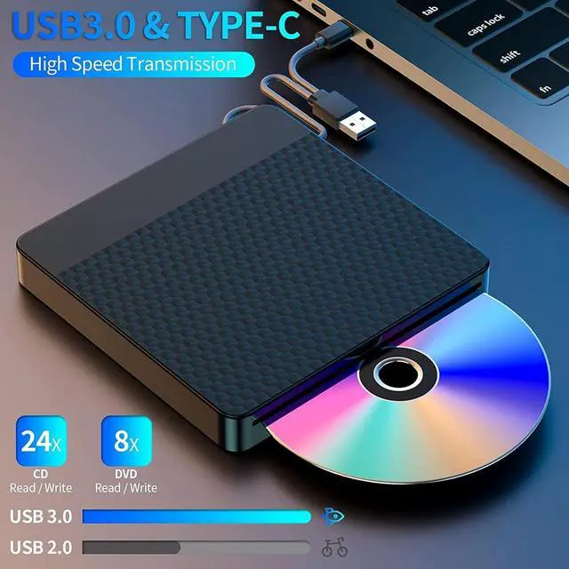 This slot loading external dvds drive eliminates tray hassles, enabling effortless disc insertion for quick reading and burning, making it for efficient data management.