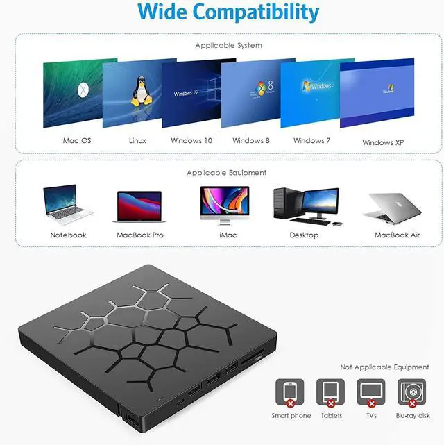 Upgraded 6 in 1 External DVD Drive