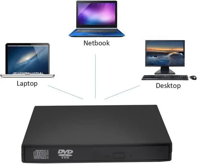 External optical drive supporting 80mm and 120mm series interface CDs.