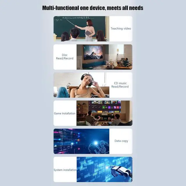 Usage scenarios: It is suitable for home offices, business travel, education and training and other occasions, making it for users to read or burn disc content at any time.