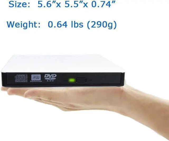 Supports Plug and Play, easy to use. No drive and external power needed. Just plug it into your USB port and the DVD drive will be detected. Comes with standard with an eject button so that you never have to worry about your disc getting stuck inside this external CD/DVD optical drive.