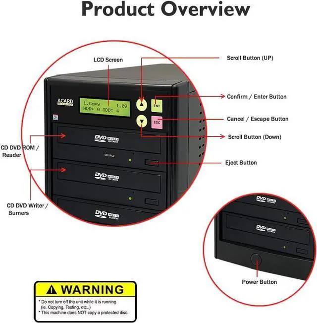 ACARD Duplicator's Enhanced Feature set include: Power on Self Diagnostics Upgradeable FW and Drives