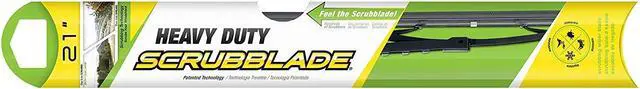 SB2100 - 21", 530MM HEAVY DUTY SCRUBBLADE WIPER. SCRUBBING WIPER BLADE WITH INNOVATIVE 2-PART CLEANING SYSTEM. Fast and easy to install, the Heavy Duty SCRUBBLADE fits about 80% of all vehicles and comes with one universal adapter. Its steel frame construction with steel rivets provides a sturdy, strong performance with every swipe. With double blade design, and 100s of triangular scrubbers, it delivers a clean like no other wiper blade.