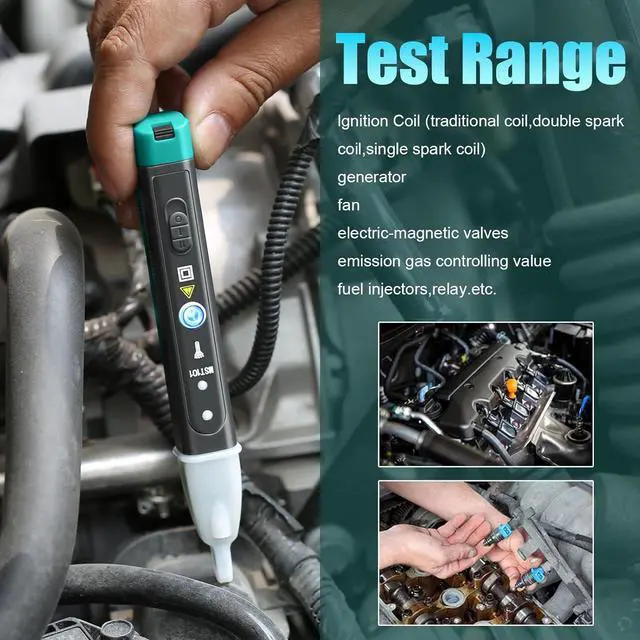 Test Scope Generator sets (conventional coil, double spark coil, single spark coil) generators, fans, solenoid valves, emission gas control values, fuel injectors, relays, etc.