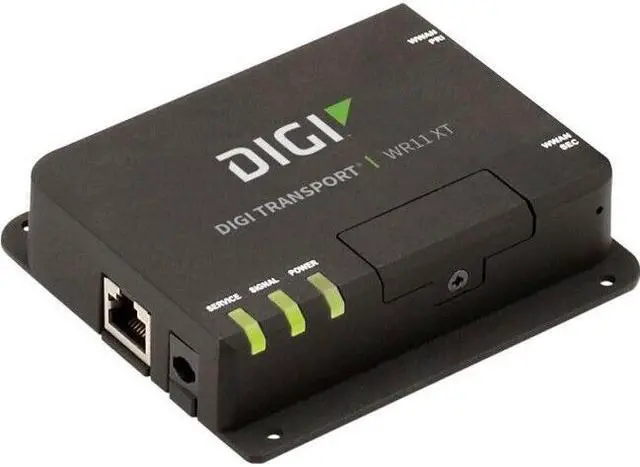 Digi TransPort WR11 XT delivers a cost-optimized 4G LTE connection to mission critical M2M applications around the world. These cellular routers are ideal for connecting: Building and process automation controllers Smart grid assets (meters switches and controllers) IP cameras and access controllers Remote data loggers flow meters and sensing equipment Telco infrastructure controllers ATMs kiosks and service terminals The Digi TransPort WR11 XT provides a secure reliable connection to industrial controllers retail terminals and process automation equipment on third party sites or remote locations. This drop-in connectivity gives operators a way to reduce the cost of downtime and service calls and also increase revenue by bringing distributed sites online faster. Digi management solutions provide easy setup configuration and maintenance of large installations of remote Digi TransPort devices. Digi Remote Manager ® offers webbased device management for remote Digi cellular routers gateways and third-party devices. 5-year warranty standard-no additional costRugged aluminum enclosure flanges and optional DIN rail clip for flexible mountingDigi Remote Manager provides mass configuration device management and troubleshooting toolsEnterprise routing features for security logging and redundancy (e. g. stateful firewall VPN SNMP); no annual enterprise software license requiredExtremely resilient cellular connection through patented Digi SureLink™ VRRP+ protocol and dual SIM slotsGlobal HSPA+ and 4G LTE support and certification