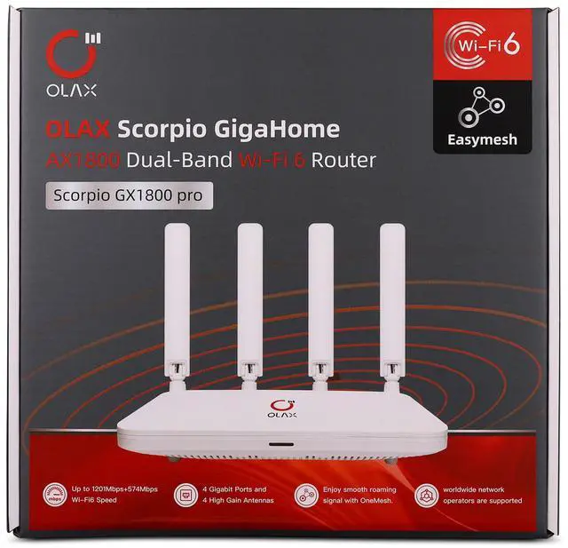 The OLAX Scorpio GigaHome AX1800 is a powerful router designed to meet the demands of modern connectivity, whether for work, entertainment, or smart home devices.