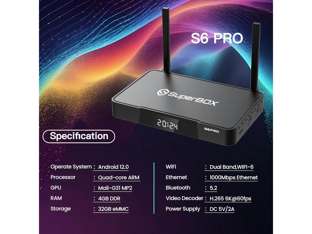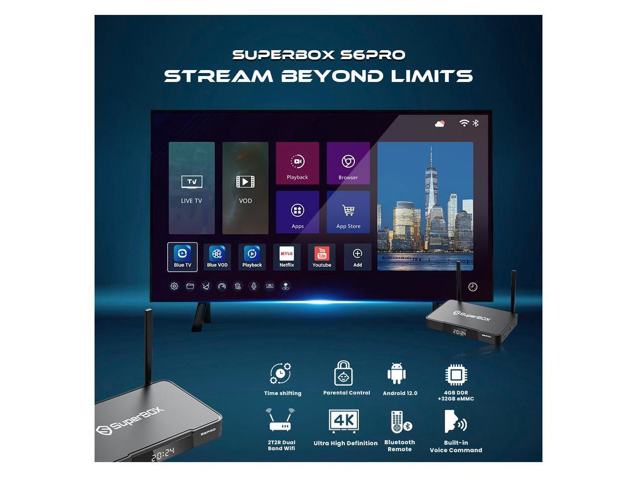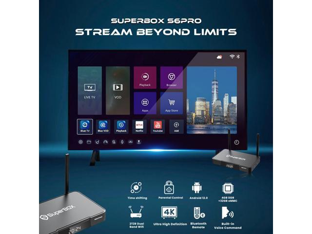 Superbox Premium Edition S6 Pro - Android 12, 4GB RAM, 32GB Storage, 6K Media Player with Voice Control, Timeshift Function, Parental Control, Smart Android TV Box