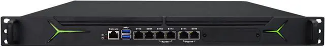 Front I/O: 1 x power indicator light, 1 x hard disk indicator light, 1 x COM (support Console), 2 x USB 3.0, 6 RJ45 Lan port (supports 2 groups of Bypass)