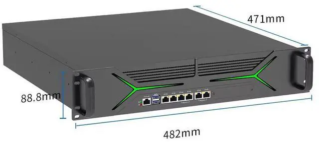 Front I/O: 1 x power indicator light, 1 x hard disk indicator light, 1 x COM (support Console), 2 x USB 3.0, 6 RJ45 Lan port (supports 2 groups of Bypass)