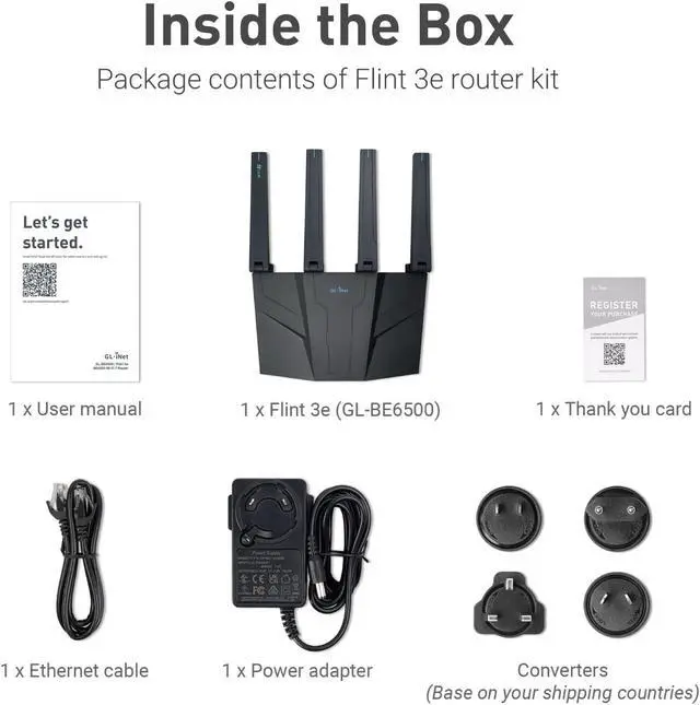 MLO + 4K-QAM BreakthroughFlint 3e represents the future of wireless router, delivering ultra-fast speeds, significantly reduced latency, and improved connectivity in high-density environments through cutting-edge innovations like Multi-Link Operation (MLO), enhanced OFDMA, 4K-QAM, preamble puncturing and Multi-RUs.