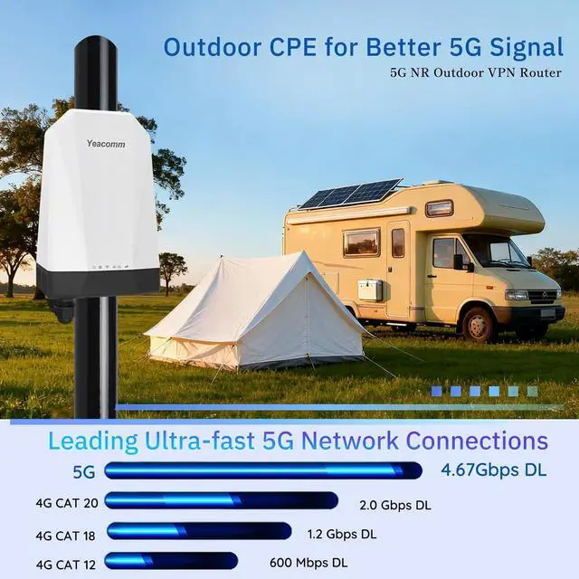 Plug and Play & Seamless Failover: Yeacomm 5g router with sim card slot plug and play, The device could automatically fix network problems in real-time without manually restarting or reconfiguring the network, simplifying Internet access, suitable for every family or outdoor scenario.