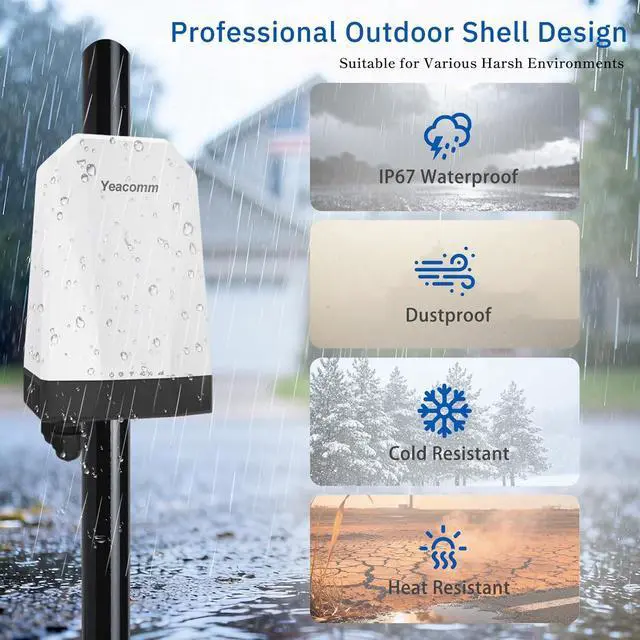 Built-in Antenna & Friendly User Interface: Yeacomm outdoor 5G LTE Router with built-in 6pcs high gain cellular antennas ensure the best signal is received. Friendly UI design includes NAT, Bridge, Router mode, WEB, TR069 and SNMP-based device management.