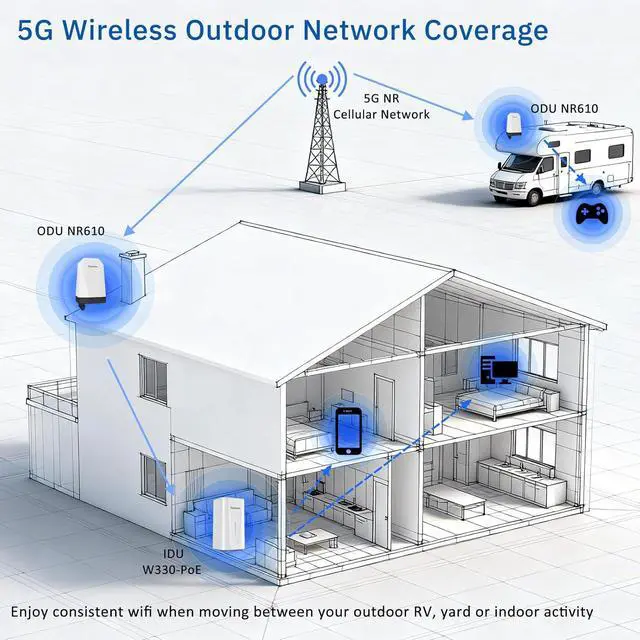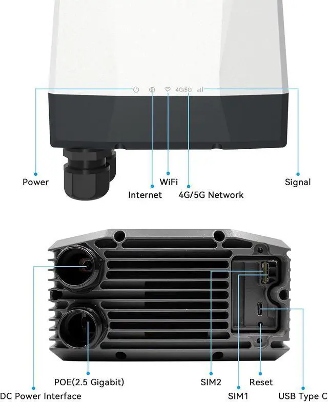 Up to 4.67G bps 5G Network & Dual Nano Sim Card SlotThis outdoor 5G Router features outdoor installation, which makes it easier to receive 5G signal, even in remote regions where 5G signal is weak. The 5G router is also backward compatible with 4G LTE networks and 3G networks, covers the world' s mainstream bands and is compatible with SA and NSA modes.