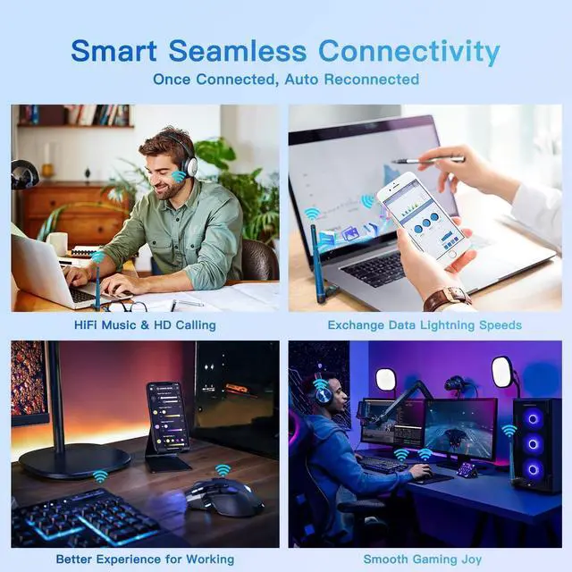 No Lag: This BT54H upgraded Bluetooth 5.4 wireless adapter features EDR technology and Bluetooth Low Energy (BLE) configuration up to 3Mbps, which greatly improves transmission rates and reduces the loss of transmission efficiency due to interference on the 2.4GH z band. Enables faster, no delay wireless data connections between your computer and Bluetooth devices.