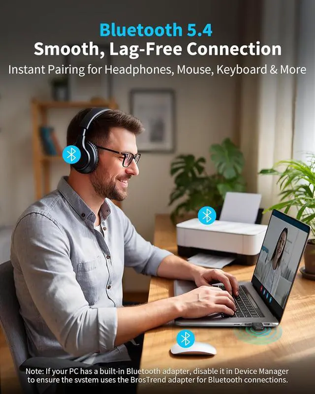 Responsive Pairing: The WiFi 6 adapter connects up to 5 Bluetooth devices such as headphones, mouse, keyboard, speaker, and printer, with a stable range up to 32 feet