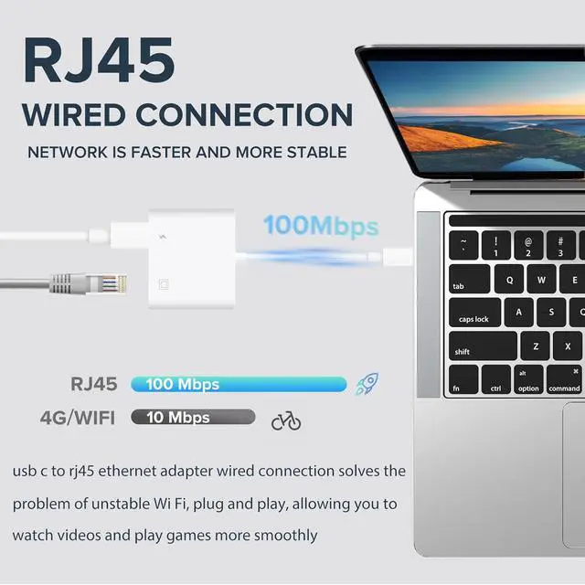 Hyper Speed Stable Links DICKMITH ethernet to usb c adapter has ultra-fast data transfer speeds supports up to 10Mbps/100Mbps ethernet LAN wired network. Giving a full play to the performance of your network and ensuring stable network speed
