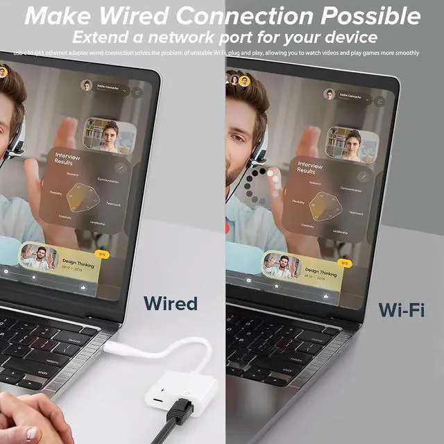 2 in 1 USB C Ethernet AdapterDICKMITH usb c to RJ45 adapter with ethernet network port + Type-c fast charging port., supporting ethernet Internet access and charging to work simultaneously. The usb c ethernet adapter can connect the network cable to your phone, iPad Pro/laptop to achieve wired network access, solve the problem of unstable Wi-Fi, plug and play, and allow you to watch videos and play games more smoothly