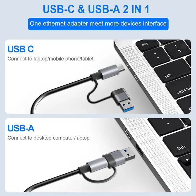 Wide Compatibility: Denlane ethernet to usb adapter/usb c adapter has a unique dual-interface design to meet various scenarios and different device connections. Whether using USB A or USBC interface, you can enjoy Excellent performance up to 1Gbps network and 2.5G USB 3.0 transmission