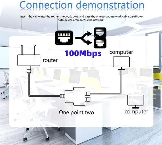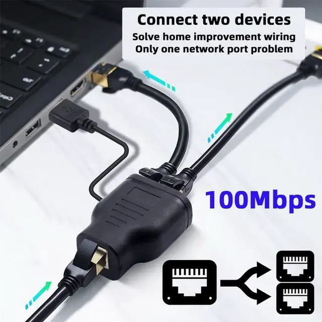 Easily convert your RJ45 outlet to two RJ45 sockets with this network splitter