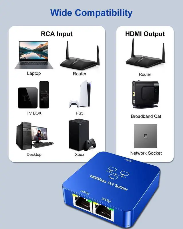 Dual Device Connectivity Say goodbye to the hassle of insufficient ports with our Ethernet splitter that supports two devices simultaneously. Whether for gaming consoles, smart TVs, or computers, our splitter enhances your networks flexibility and stability, ensuring uninterrupted connections every time.