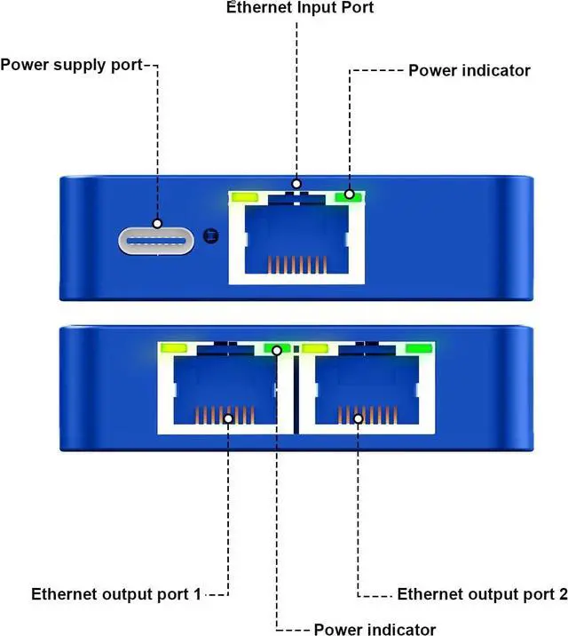Plug and Play ConvenienceElevate your networking experience with our Ethernet splitters plug-and-play setup. Simply connect the included USB power cable to a 5V/1A DC power source, and youre all set. This feature is designed to minimize setup time and confusion, providing a user-friendly solution for your network expansions.