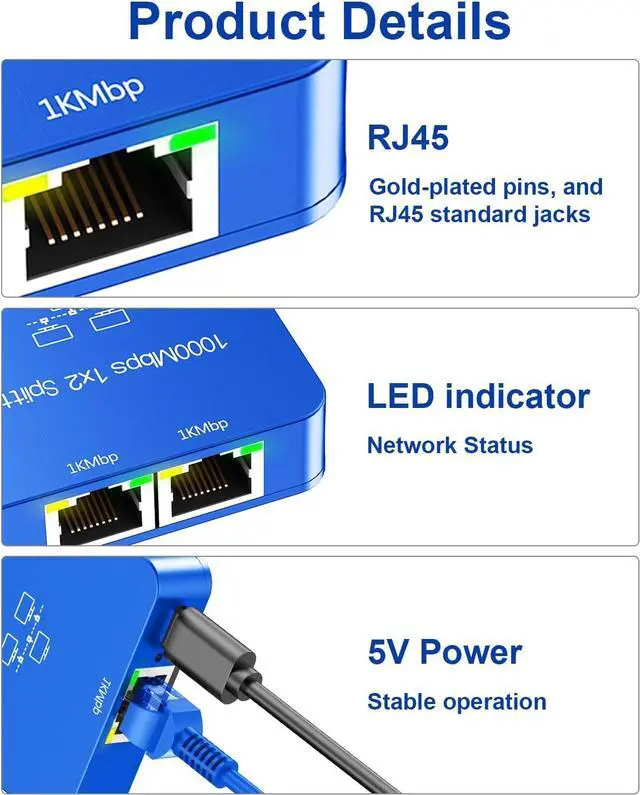 • Plug and Play ConvenienceElevate your networking experience with our Ethernet splitters plug-and-play setup. Simply connect the included USB power cable to a 5V/1A DC power source, and youre all set. This feature i