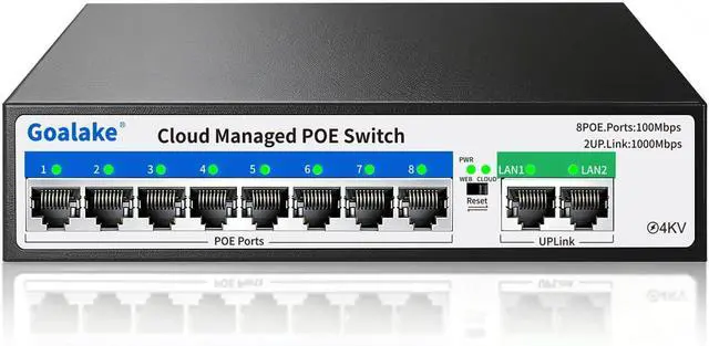 Ports Easy Managed Poe Switch: Goalake easy managed poe+switch includes 8 managed poe ports (8*100M) + 2*1000M uplink ports. Compliant with IEEE 802.3 af/at standard, it can deliver up to 30W for each PoE port. Data, and power can be transferred on one single cable. It supports PoE power up to 120W for all PoE ports. Please note that if your device is a passive PoE or non-PoE device, the switch will only be able to transmit data, not power. In such cases, connected devices need an independent power supply. Alternatively, you can use an active PoE splitter to power your devices.