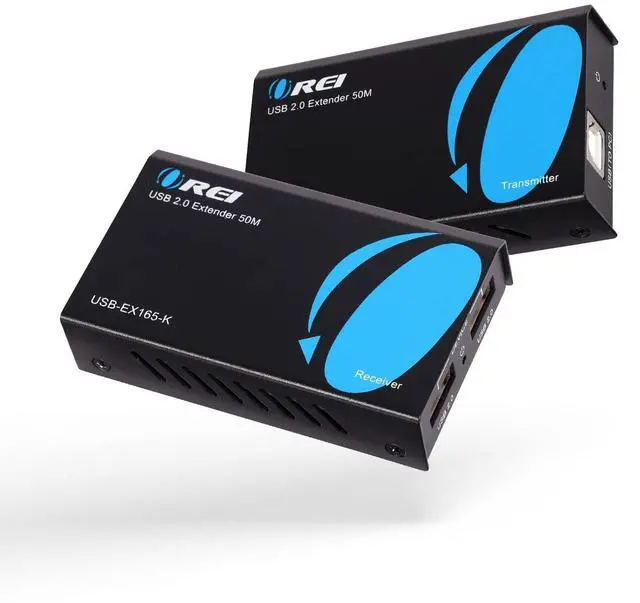 OREI USB over Cat5e/6 Extender - Powered USB Range Balun supports High-Speed USB 2.0 Function (Max 480Mbps) - Supports Any Operating Systems such as (Windows, MacOS, Android, Linux), 2K@60Hz. The device comes with a dual voltage supply using a US plug, and an adapter/converter is provided for international use.