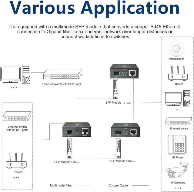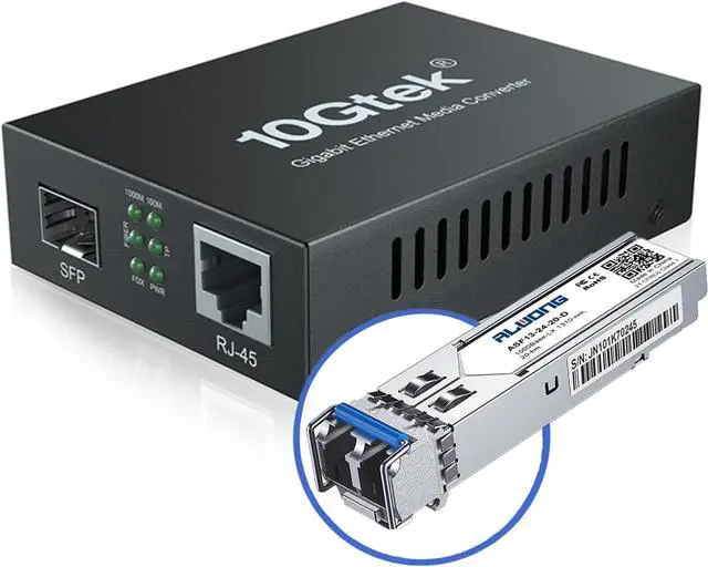 RJ45 Fiber Media Converter: convert 1000BASE-SX/LX fiber to 1000Base-T copper media ( SFP LX transceiver is included for this listing)