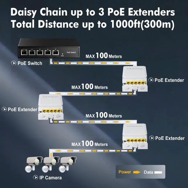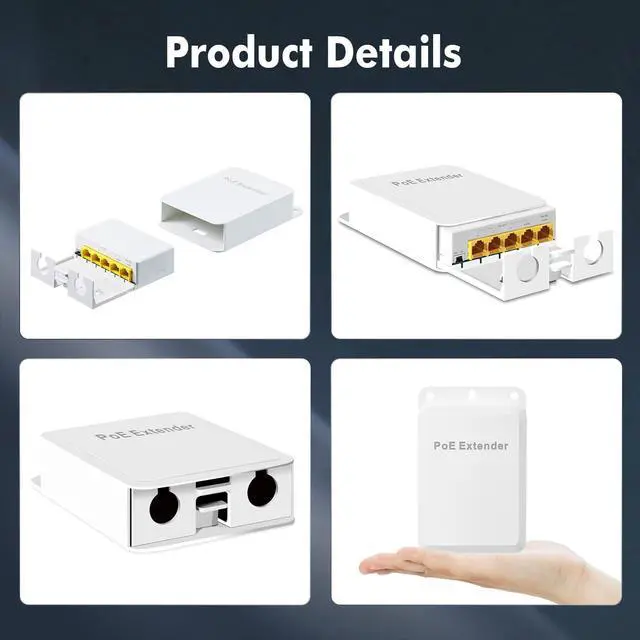 Easy Install Support wall mount, smaller size save space, suitable for many positions. Support 3-level cascading, can connect poe AP, camera, phone and other POE devices, extender POE coverage at low cost