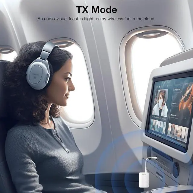 Bluetooth Audio Transmitter Receiver: Wireless adapter combines bluetooth transmitter and receiver with 3.5 mm auxiliary jack. In TX mode, helps you transmit audio from devices like TVs, PCs, and airplane entertainment to your bluetooth headphones, earbuds, or speakers. In RX mode, lets you connect your smartphone to wired speakers or earphones wirelessly from bluetooth