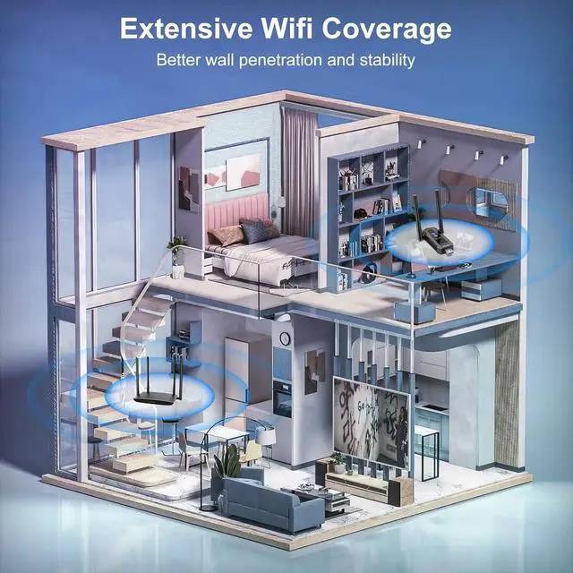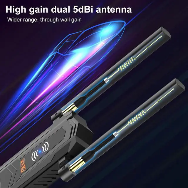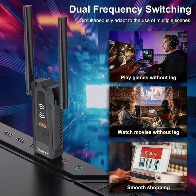Dual frequency high gain dual antenna: Remote connection, no latency and very stable. The adapter uses the 802.11 ac standard and offers WiFi speeds of up to 867Mbps in the 5GHz band and up to 400Mbps in the 2.4GH z band. Can browse pages and games in high and stable network speed.