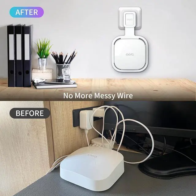 Elegant Solution For The Wire - No more messy wire. Perfect for Cord Management. The wall bracket for eero 6e pro mesh wifi system hide the cord completely inside the wall bracket. It get the eero units off your furniture and counters. No More taking up space on counters or tables.