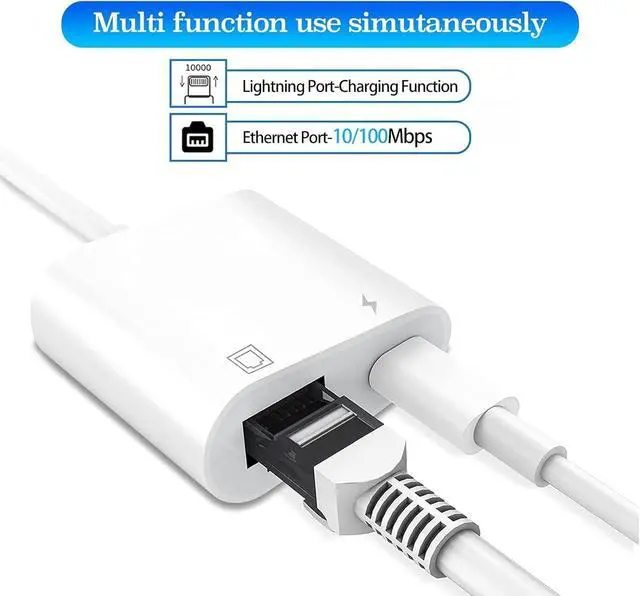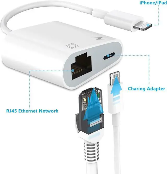 2 IN 1 DESIGN- This 2 in 1 Phone RJ45 Ethernet LAN Network Adapter includes Ethernet port with charging port. Supports Internet access and charging at the same time. Pass-through power feature allows for charging of iPad while in use via additional Lighting port.