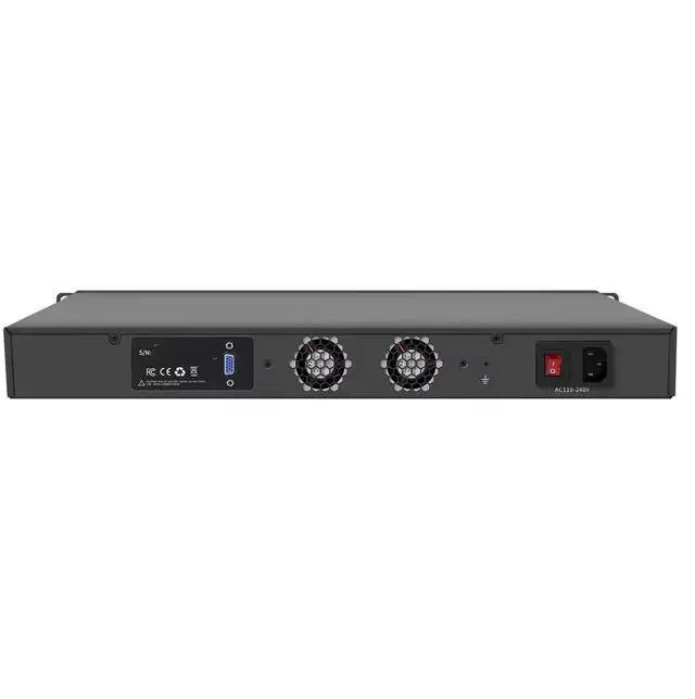 I/O Interface: Console, USB 2.0, USB 3.0, 6 x LAN, 4 x SFP+ Optical, AST 2400 VGA, Power Switch, AC Socket