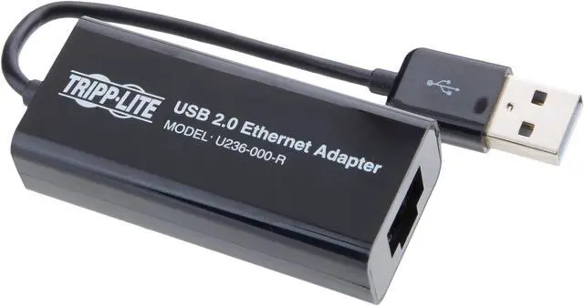 Tripp Lite's U236-000-R USB 2.0 Ethernet Adapter allows your computer to instantly connect to a 10/100Mbps network through a USB port - no need to open up your computer case to add an internal Ethernet card. It's also an ideal USB-to-LAN alternative for a gaming console that needs network access in an environment lacking wireless capability. The adapter's compliance with USB 2.0 (480Mbps) ensures true 10/100 Mbps network speed without any compromise. Furthermore, the adapter is compact and is USB bus-powered; requires no external power adapter. 3-year limited warranty
