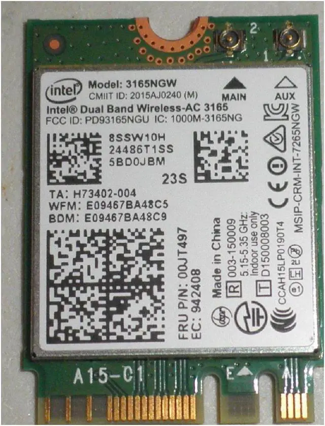 Lenovo OEM Intel 00jt497 3165NGW AC 3165 Wireless N Mini Wifi Bluetooth BT 4.0 Card