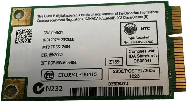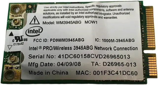 Package Includes: 1 Lenovo ThinkPad T61 Laptop WM3945ABG Mini PCI-E Wireless Card- 42T0853
