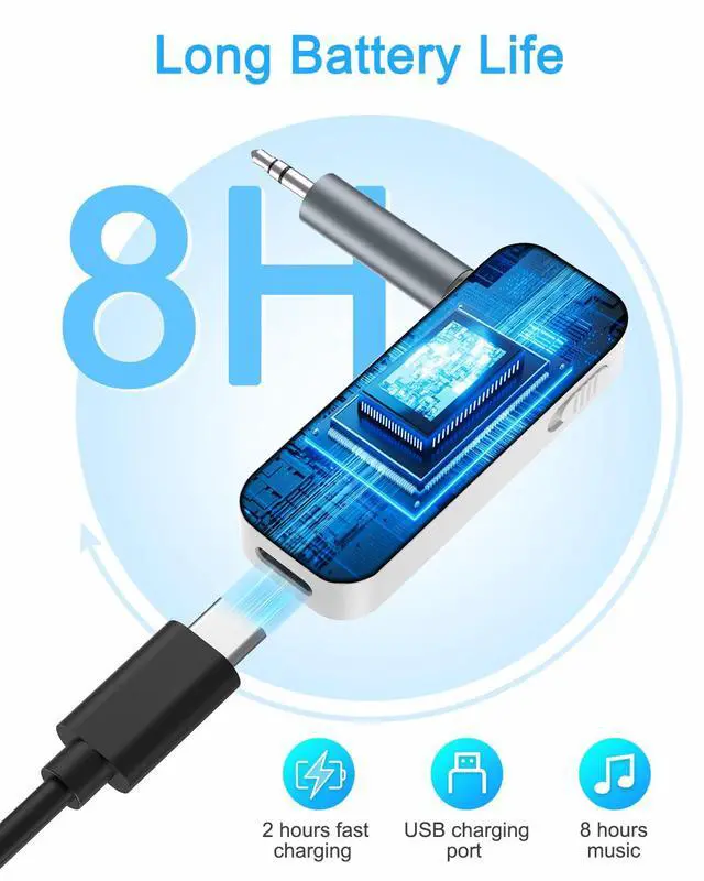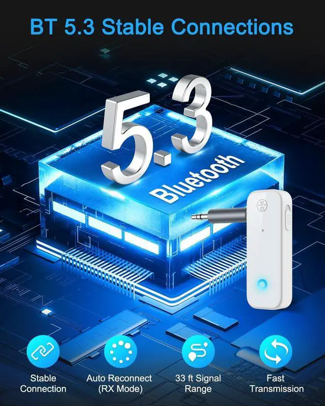 Bluetooth 5.3 Version for Stable Connection: This Aux Bluetooth Adapter for Car features the latest Bluetooth 5.3 technology, which enables long range transmission and stable connection up to 33 feet (10 m), allowing you to enjoy a pleasant music environment while driving.