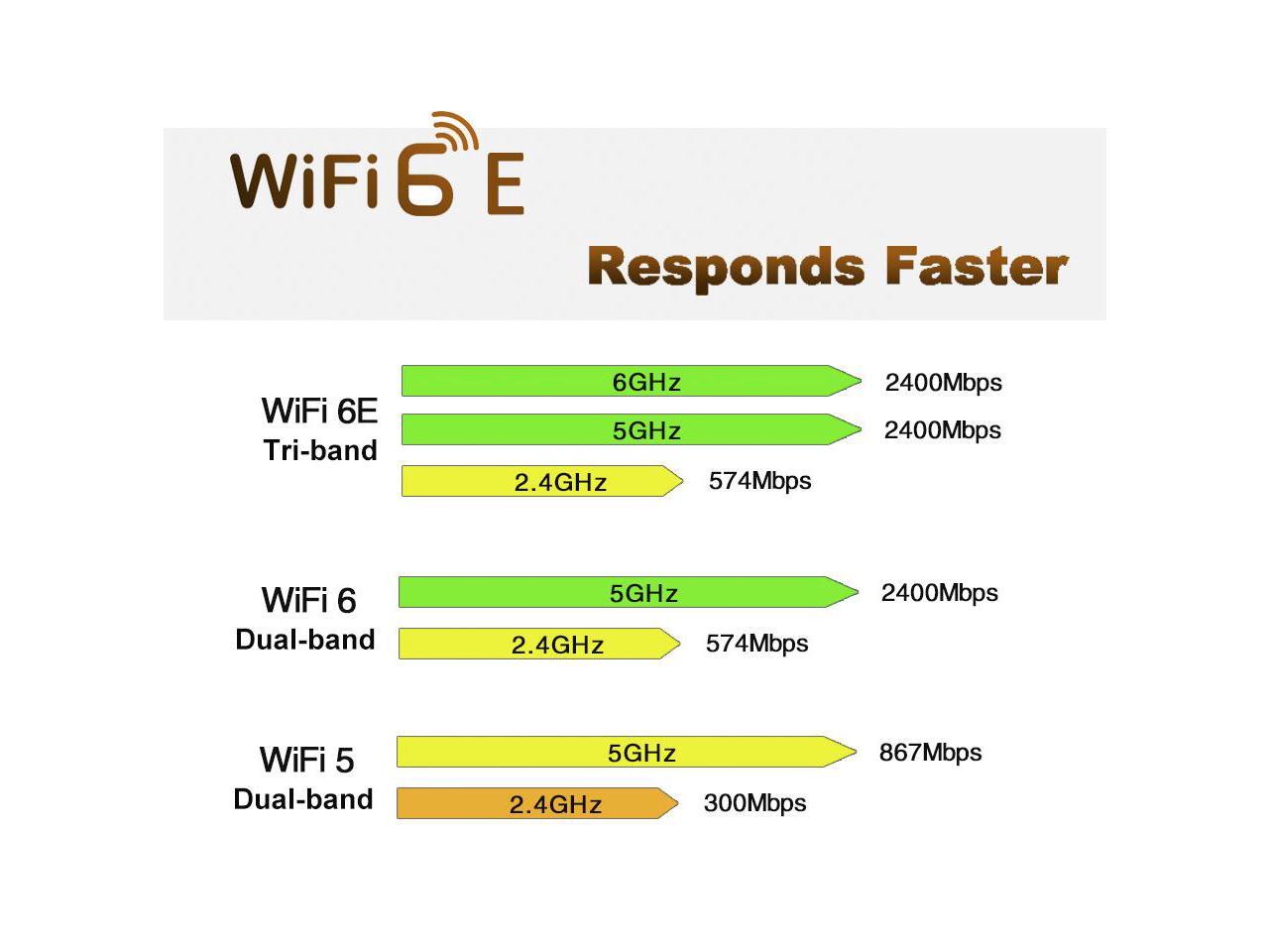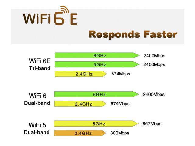 - WiFi 6E Tri-band, Faster Response, Up to 6GHz (2400Mbps)