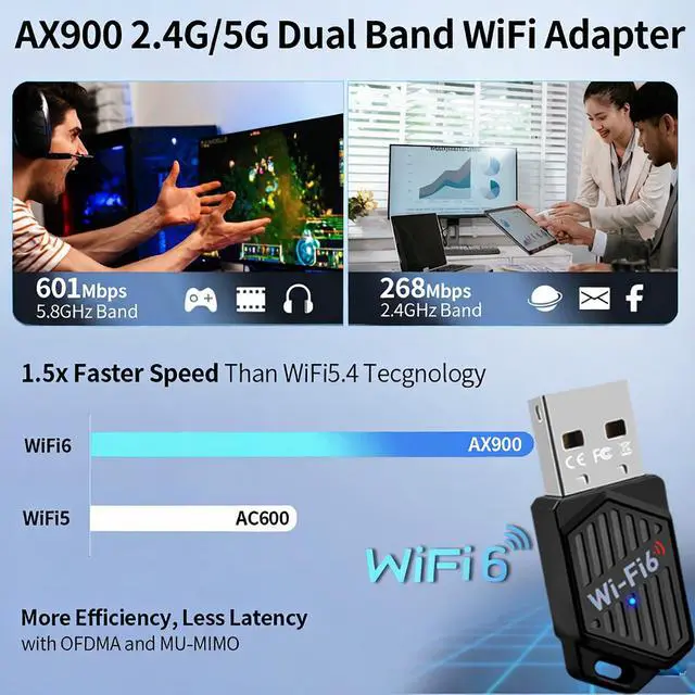 AX900 Bluetooth USB WiFi 6 Adapter WiFi Dongle for PC