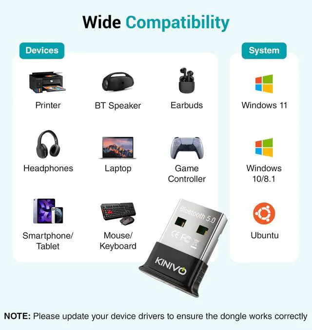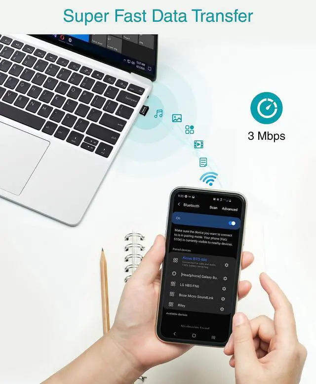 - Connect your Computer / Laptop with Bluetooth-enabled devices such as Phones, Tablets, Keyboards, Mice, Printers, Headphones, Soundbars etc.