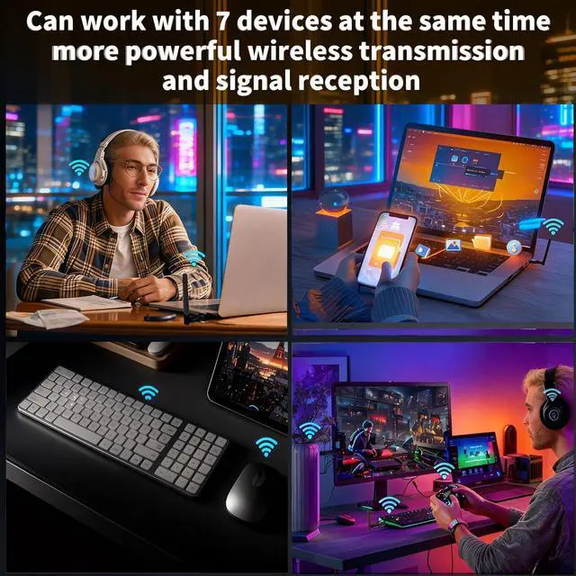 Latest Bluetooth 6.0 dongle: Utilizes the latest Bluetooth 6.0+EDR technology, compatible with Bluetooth 6.0/5.4/5.3/5.2/4.2/4.2 LE/4.0/2.1+EDR, and features Dual mode (BR/EDR+ Bluetooth Low Energy) for reduced energy consumption and enhanced speed, ensuring quick response and superior anti-interference capabilities.